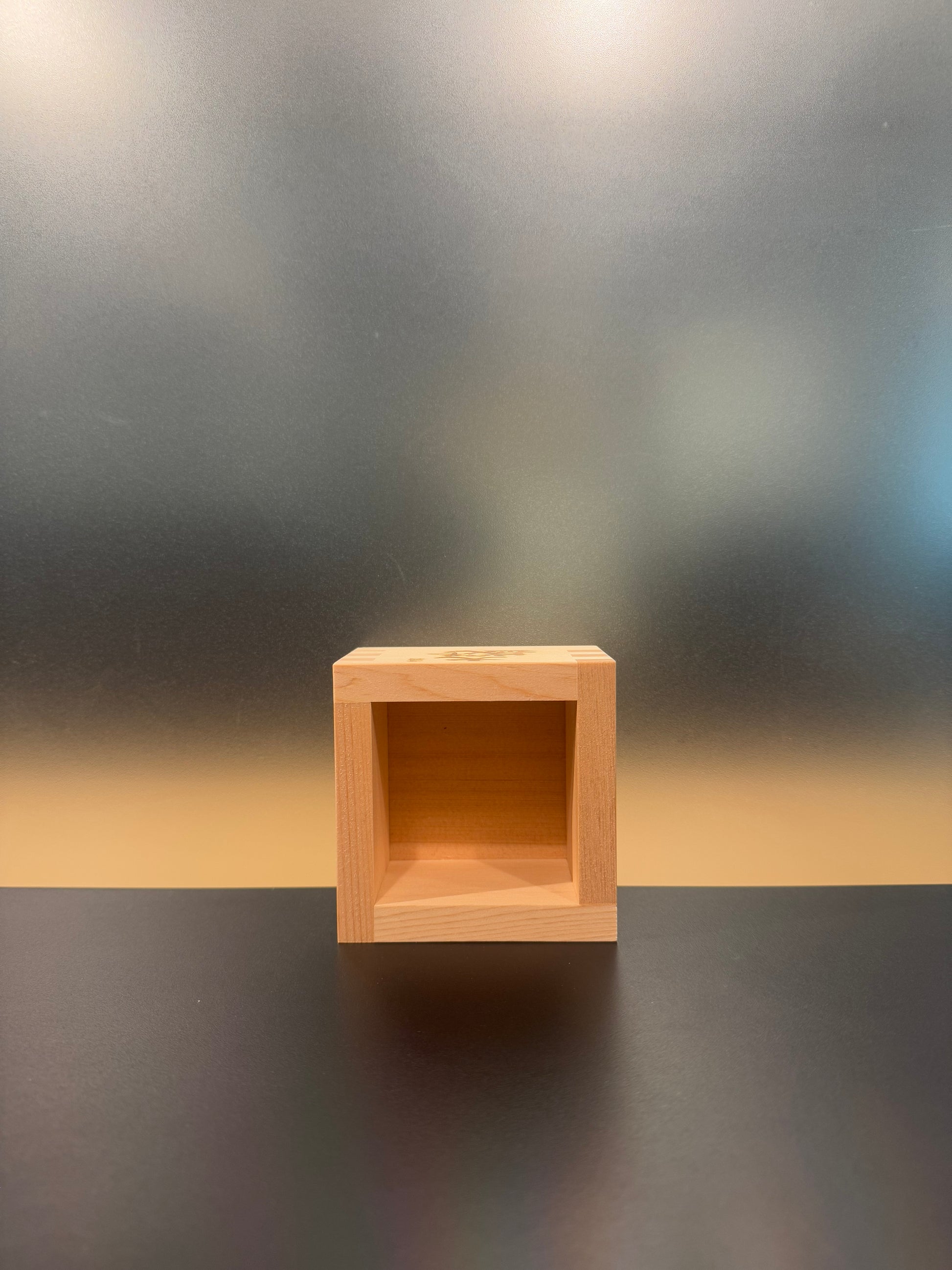 この木升でお酒をお召し上がりください。” 檜の香りと共に一味違う体験を!